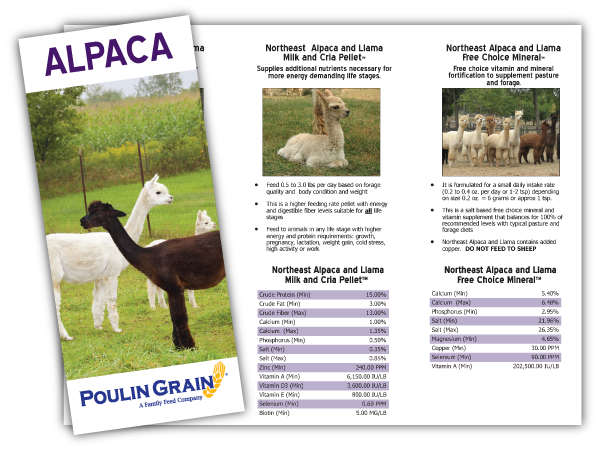Poulin Grain alpaca/llama products are designed to balance Northeast hays and pasture crops.